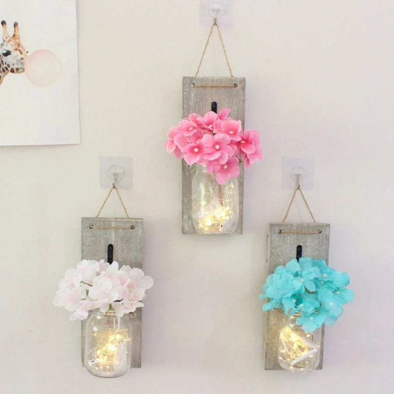 Habom Rustic Mason Jar Wall Decor Sconces Decorative Home Lighted Country House Hanging With Led Fairy Strip Lights And Flowers Hydrangea Farmhouse Sconce Jars Set Of 2 Walmart Com Walmart Com from i5.walmartimages.com 18 mason jar flower arrangements you'll want to display all summer. Diy wood mason jar holder ~ jazz up your walls with a diy wood mason jar holder that invites fresh blooms year round. Choose your favorite mason jar paintings from 554 available designs. Christmas flowers in mason jars. Check out our mason jar flowers selection for the very best in unique or custom, handmade pieces from our home & living shops. Line a wooden crate or old toolbox with mason jars and fill with your favorite flowers in soft hues. Set of 3 mason jar/flower wall sconce. Rustic mason jar is the perfect wall decor as you can switch out the flowers as often as you like for any holiday or decor.